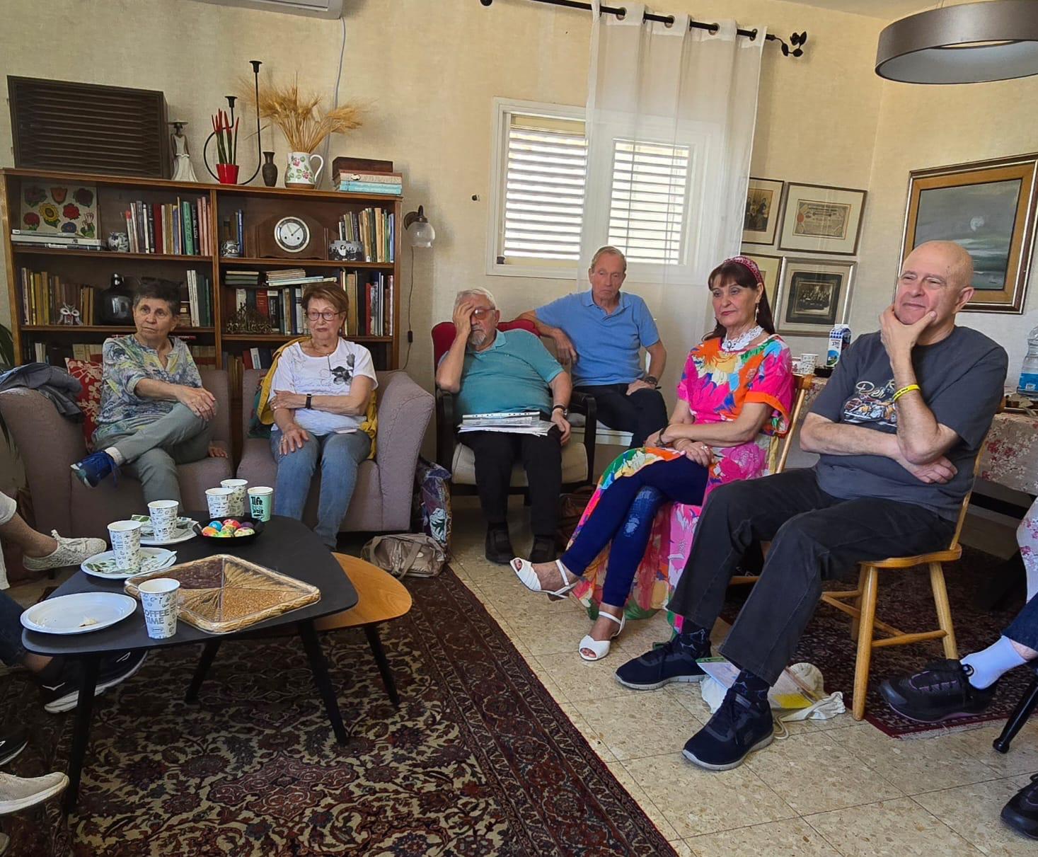 שישה מתוך כלל המשתתפים בשיחה. מימין לשמאל: רני, יפה, נחום, אילן, שושנה, רחלי |